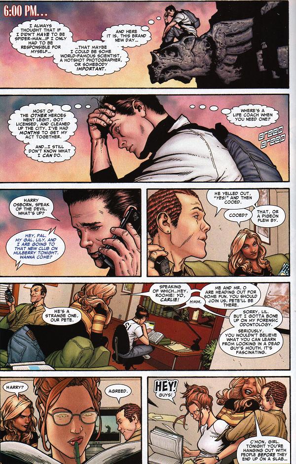 Since i scanned this one for the favorite pages thread, i'll upload it here too. That seems on topic and will allow us to have another exemple of the Brand New day art, to discuss it in context. Thats from the part one of Brand New Day, last week's Amazing Spider-Man 546: