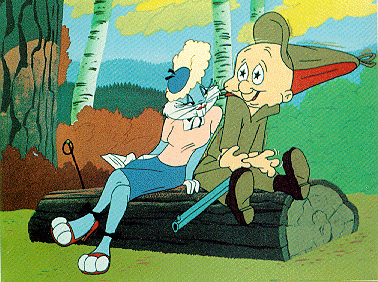 Are you kidding!?!? Even as a kid, I knew Bugs was gay. He cross-dresses in almost every cartoon, and clearly enjoys it! (Listen to him "doing gay" when he dresses the monster's hair.) He's always marrying Elmer Fudd to solve his problems. He gets turned on by sexy female robots with gigantic tits!
