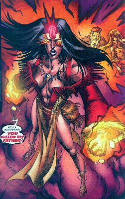 Here are some Talisman images from the Omega Flight series. Two of them show "wardrobe malfunctions." The third one, well, I just don't understand how the costume stays on. Magic?