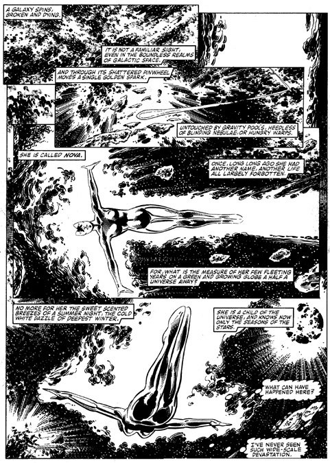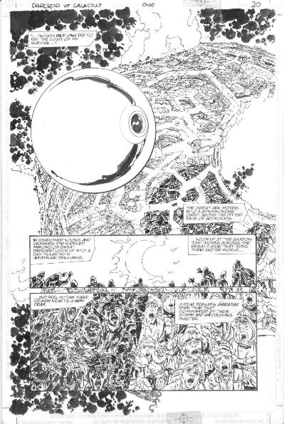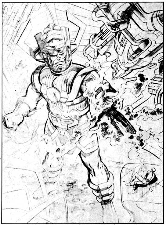 Good start to this thread!  Galactus is one of my very favorite characters in all superhero comics.  In all of fiction really.  I realize now that I do not have a single piece of art in my collection featuring Galactus.  I do have a page from Darkseid vs Galactus featuring his ship: