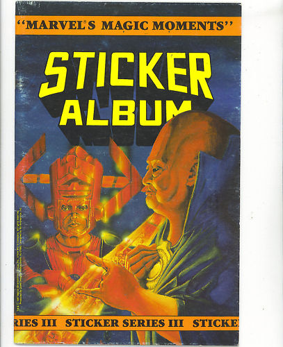 Love that Marvel "Magic Moments" sticker album. I've always wanted to know what the Watcher would look like as played by Wilford Brimley.