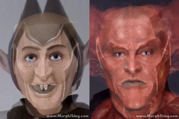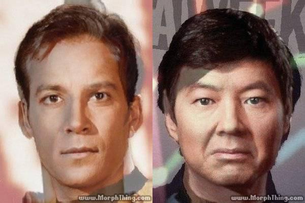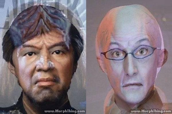 Since we've already seen Abed as Spock, this time some switching around needed to take place, so... Kirk/Abed (Wm. Shatner/Danny Pudi); Spock/Troy (Leonard Nimoy/DonaldGlover) Edith Keeler/Annie Edison (Joan Collins/Alison Brie); Shahna, the Drill Thrall/ Britta Perry (Angelique Pettyjohn/Gillian Jacobs) Klingon/Chang (Michael Dorn/Ken Jeong); Balok/Dean Pelton (Balok Puppet/Jim Rash) I was going to Morph Chang with, y'know, Chang from the sixth film, but the eyepatch wasn't going to allow that to work, unfortunately.
