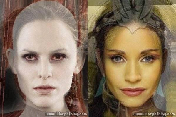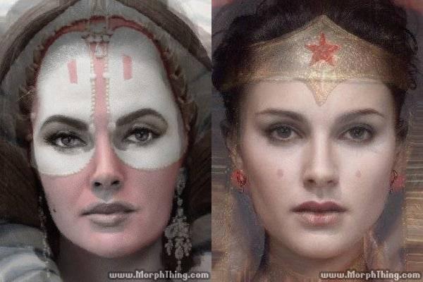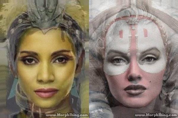 Oola & Halle Berry; Shaak Ti & Marilyn Monroe! Leia (Carrie Fisher) & Yvonne Craig; Rystall & Julie Newmar! Shaak Ti & Elizabeth Taylor; Amidala (Natalie Portman) & Lynda Carter!