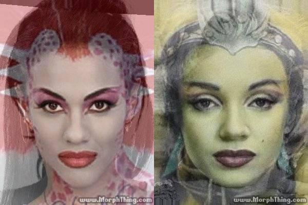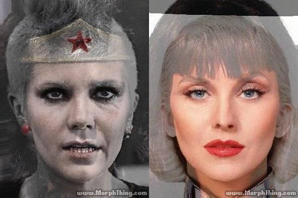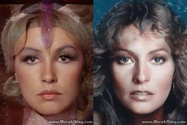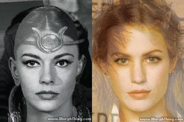 Ilia & Isis! (Persis Khambatta & Joanna Cameron!) January Jones & Joan Jett! Keira Knightley & Kristen Kreuk! Lana Lang & Lois Lane! (Annette O'Toole & Margot Kidder!) Marilyn Monroe & Maureen McCormick! Nichelle Nichols & Noel Neill! Odona & Ororo! (Two fictional characters who don't care much for closed, crowded spaces and enjoy being free in the open air... Sharon Acker & Halle Berry!) Paulina Porizkova & Piper Perabo! Quark (Armin Shimmerman) & Quisp! Rachel Ray & Rita Rudner!