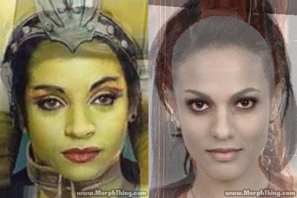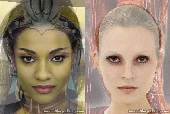 Saavik (Kirstie Alley) & Oola! Freema Agyeman & Aurra Sing! Jennifer Garner & Rystall! Holly Marie Combs & Amidala! Lynda Carter & Shaak Ti! Halle Berry & Rystall!