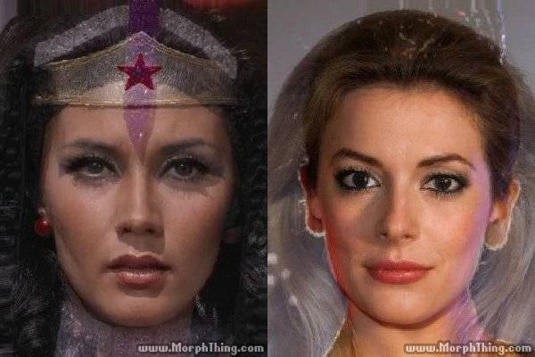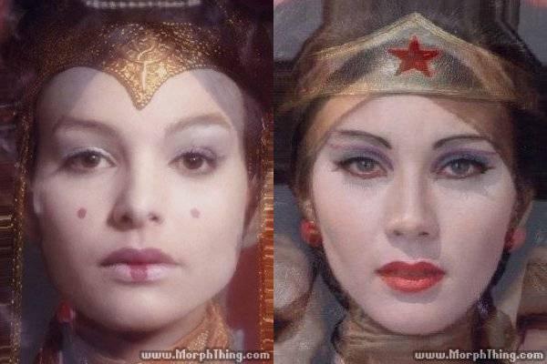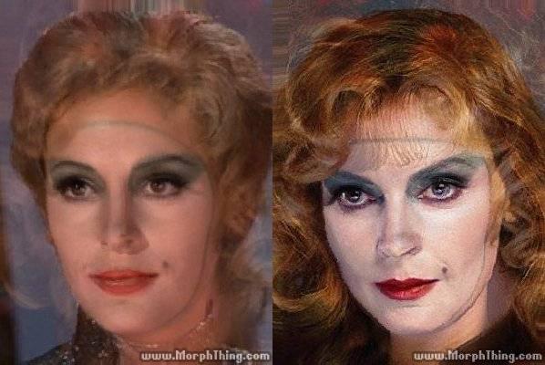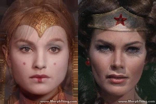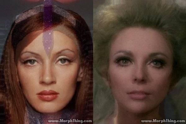 Kirk (William Shatner) & Han Solo (Harrison Ford)! Spock (Leonard Nimoy) & Chewbacca (Peter Mayhew)! The two Dorothys, Judy Garland & Fairuza Balk! The two Romanas, Mary Tamm & Lalla Ward! Henry Cavill, the Man of Steel, & Colossus (Daniel Cudmore)! Kitty Pryde (Ellen Page) & Lois Lane (Amy Adams)! Ensign Ro (Michelle Forbes) & Kira Nerys (Nana Visitor)! William Shatner & George Reeves! A three-way Cage match: Number One (Majel Barrett), Yeoman Colt (Laurel Goodwin), & Vina (Susan Oliver)! What if Pike didn't have to choose...? Fairuza Balk & Emma Ridley, Dorothy & Ozma, the girl in the mirror... The two Scarecrows: Dr. Syn (Patrick McGoohan) and Ray Bolger! The two Doctor McCoys: DeForest Kelley & Kelsey Grammar! Edith Keeler (Joan Collins) & Losira (Lee Meriwether)! Natira (Katherine Woodville) & Amidala (Natalie Portman)!