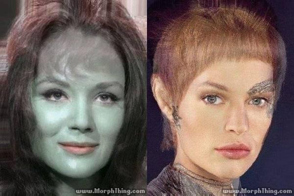 …Marianna Hill & Sherry Jackson…•• Strangely enough, I really have to work at it to see Ms Jackson there. There's a certain softness, which I associate with her face, but mostly I'm seeing Ms Hill. ++++ ...Jeri Ryan & Jolene Blalock.... •• Can't see Ms Ryan there, either.