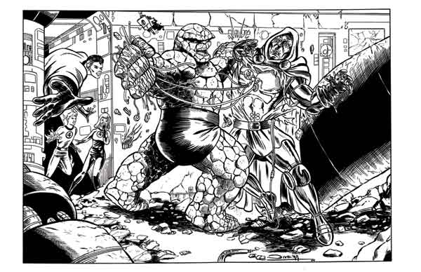 Heres Orlando's FF pinup, inked by luis..I'll stick some colour on that lads.Great job inking Luis .I've got one on the go at pencil stage ,i hope to post soon.