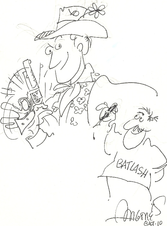 Sergio was concerned that Bat Lash was too generic; hence the t-shirt... :-) (Fun con moment occured when Don Rosa asked why I ask Sergio to do Bat Lash of all characters; he hadn't realized that Sergio had written the book back in the day.)