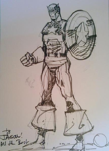To John-----Yes, he is one very nice humble guy. I like his cover work for Matt Wagner's(and the only true version for that company) Green Hornet. I look forward to see what he does with Jim Gordon's back up. To Jason----Don't know how much of a lucky charm I am.I just simple take the chance and any organization who helps those who gave me years of pleasure in there old age/illness is good in my book, so I don't mind spending some money to get a chance to get pieces from artists that I like(Perez or Simonson). Perez was really the one who told me about the good the organization does. And actually between my nephew and I we have only done 4 Perez head shot sketches via Hero Initiative. The rest of my Perez pieces were commisions over the years and some ebay finds. To Bill----The Wagner Batman piece for my nephew was a late minute pick up from Wagner, when I told him that it was for my nephew who wasn't able to come to the show, he took a look at where to inscribe it and then asked if it would be ok to do it in a word balloon. My nephew was very happy. I'm glad every one enjoyed my piece. PS----To Fred, was that the piece Adam was working on late on sunday, I would have been next if time had allowed it, I had put into Adam's lottery for an Earth 2 Huntress(for the second show), I'm hoping the New York show will be the charm for me.