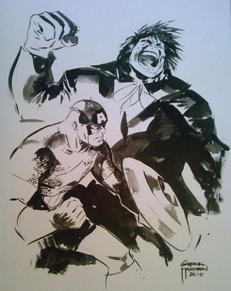 A few more from Baltimore. Captain America vs Mr. Hyde by Gabriel Hardman (thanks to Fred Chamberlain for showcasing his work):