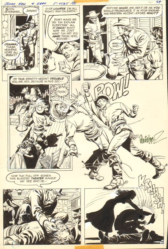 Following up on Paul's piece with the first of my two Garcia-Lopez pages. Jonah Hex #4, page 14. Skimmed through the issue and realized, not surprisingly, that this is the most dynamic page in the issue. Hex has never looked better: