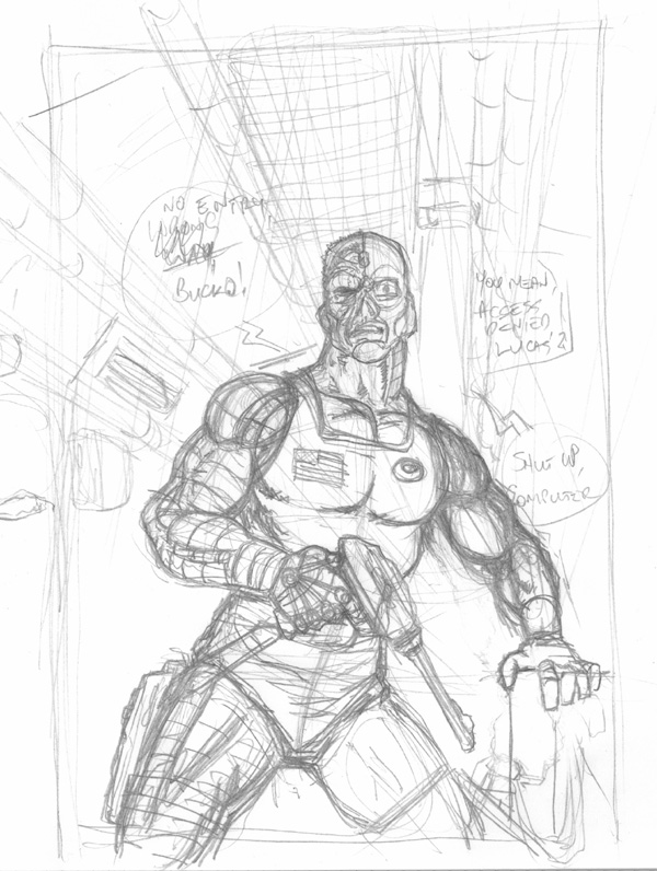 Thanks Bill, I've dug him as a character since waaaaay back in the Seventies. Here's ol' Luther all cleaned up and ready for inking (and I've gotta fix his screen right hand - it's cybernetic, too!):