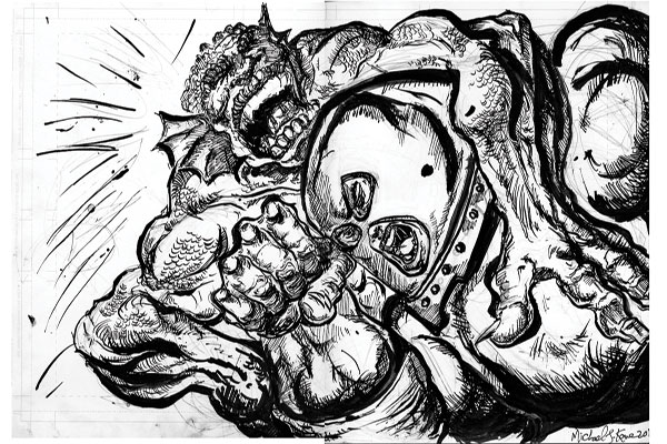 those cats eyes by Teod are amazing. ill share a sketch I worked on today. brush and ink
