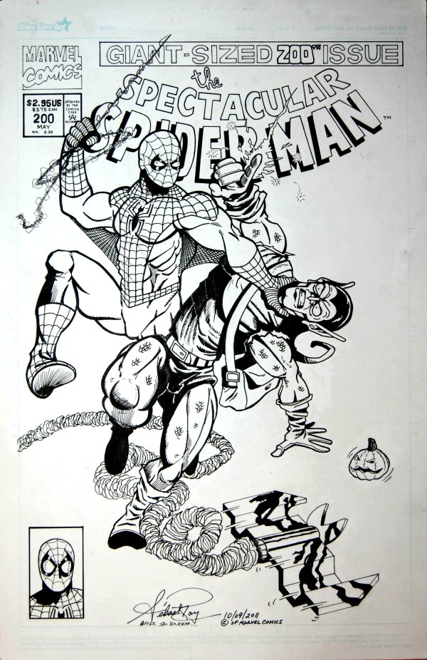 Looks awesome Bill. This is my latest. One of my all-time favorite covers is the one by Sal Buscema for Spectacular Spider-Man #200. I was in the mood to draw Spidey (again! lol) fighting the Green Goblin and after pencilling the two characters, I decided to do it as a cover homage to the aforementioned title. I actually drew all the logos by hand and what a pain it was, let me tell you! I think it turned out great. I am really pleased with it. Hope you guys like it. :-)