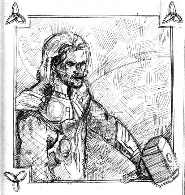 A rough pencil sketch for my next digital painting,  Chris Hemsworth as Thor.
