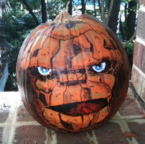 In honor of Halloween, my pumpkin is adorned with the (heavily Byrne-influenced) face of my favorite monster!