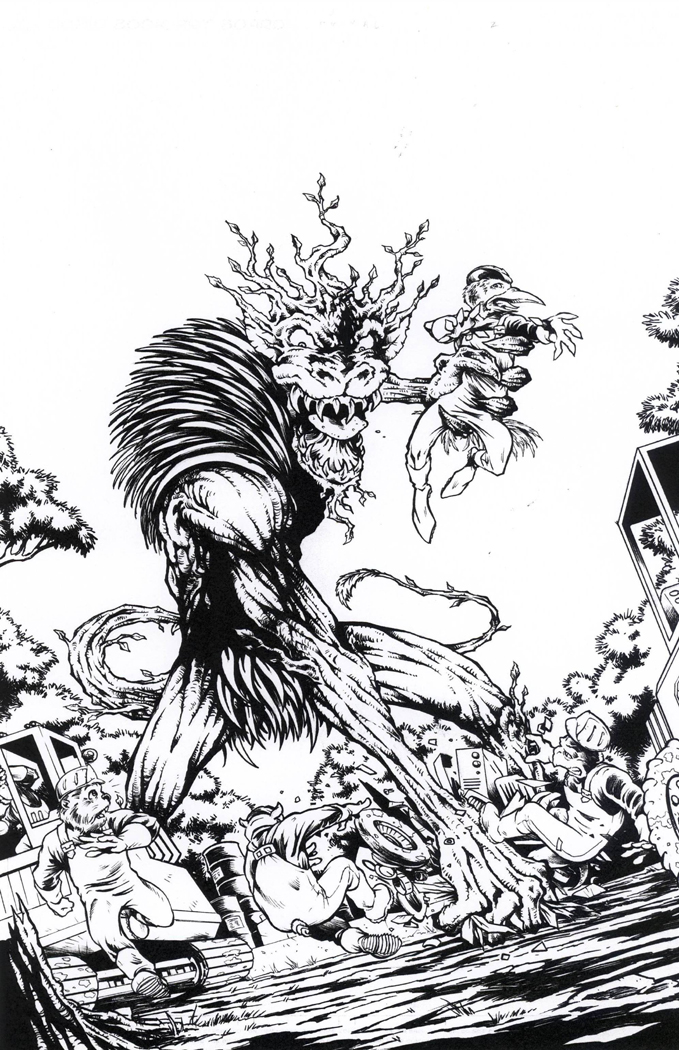 The colour was already slightly darkened. And the soft glow was already worked into the pencil. Using photoshop just enhanced the effects that were already there -- and added some softer glows to it. PS: Is that project a variation of the Big Bad Wolf? It's great work but not sure if I can identify the large character?