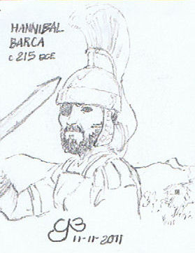 This was something I did during a work break, since I've been somewhat on a history-reading kick.  A fascinating character.  He inherited a grudge against what was fast becoming the world power of his era (later 3rd Century BCE), gathered an army to challenge that power and actually invaded its home territories in an audacious 12-year campaign.  You'd think that Hollywood would at least make one attempt to adapt the story to film, especially with the emphasis on heroes fighting evil empires (as Hannibal saw it in his day).
