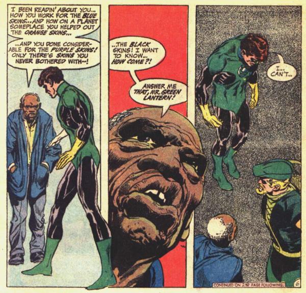 Think of Denny as the Alan Moore of his day. In GL/GA (to cite one) he wasn't really doing anything all that New and Innovative, but he was doing things most of the readers had not seen in superhero comics before.Mostly, tho, we were all blown away by the ART! Speaking of GL/GA, there was one scene that everybody seemed to go wild about, in the first O'Neil/Adams issue. When I did an internet search for the graphic just now, it was the FIRST THING to pop up. You know the scene: