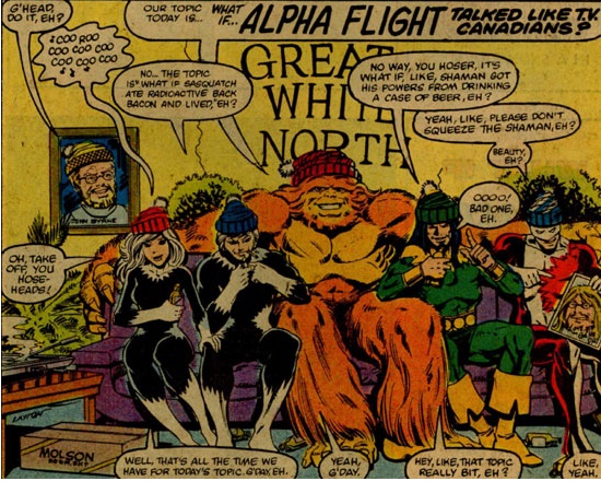 When I created the team (or most of them) in my fan days, the were called "The Canadian Shield" after the mountain range tha brackets James and Hudson bays. Obviously Marvel would not go for that, just as they would not go for Mac's original name, "Guardian".(Lacking a name, people around the office started calling him "Major Maple Leaf". And we know how that turned out!)