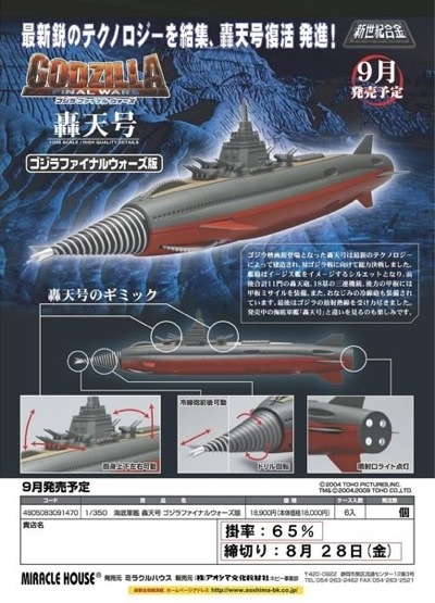 Looks like Aoshima is re-releasing that 1/350 die-cast Gohten-go (Atragon) super submarine, this time in its GODZILLA: FINAL WARS pre-title sequence configuration: