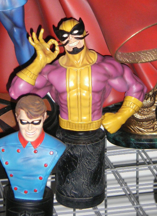 As for the Flash bust, I'm thinking they're trying to make it look like the bolt is flowing behind him like he's running fast.