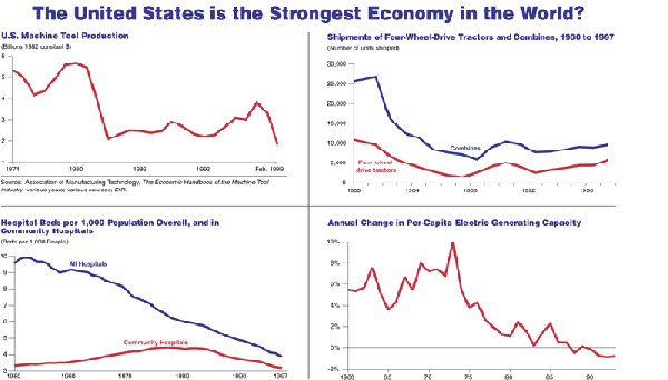 A few simple charts showing the decline of the American economy and why it is the number one, or two (after health care), concern of the election. Health care and the economy are intertwined as a nation needs a strong agro-industrial economy to pay for its the health needs of its citizens (either through a private systems or a public one).