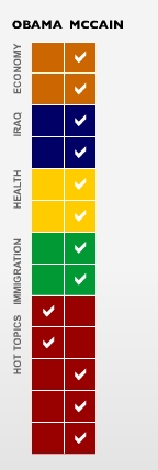 I was 3 for McCain - both economic, and the second immigration. I was 10 for Obama.