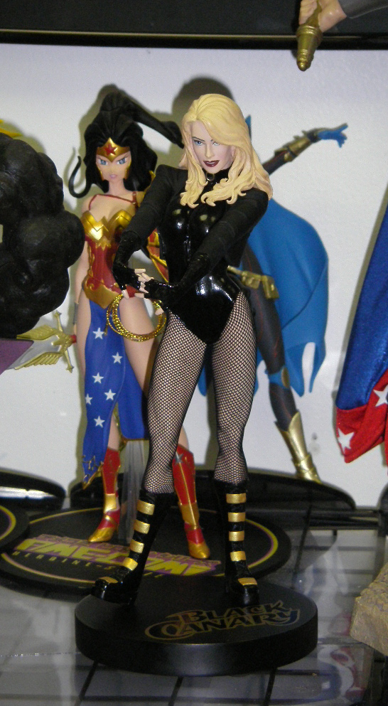 From a design viewpoint, they seem to belong to an entirely different costume. From stockings up, the Canary's outfit is sleek and form-fitting, even the "loose" jacket. Then when she got to her feet, she decided to not only go for clunky, but for sudden splashes of bling?Wassup widdat?