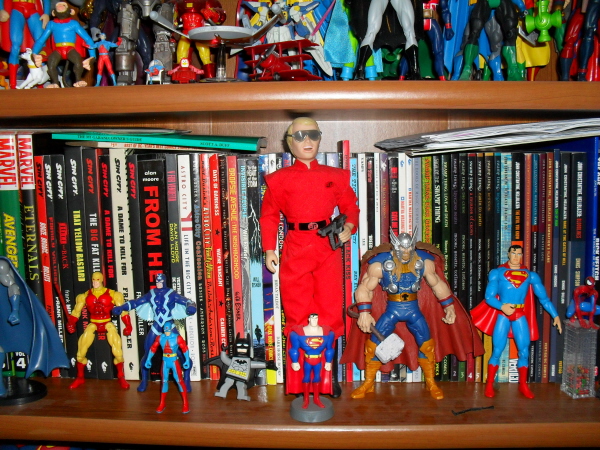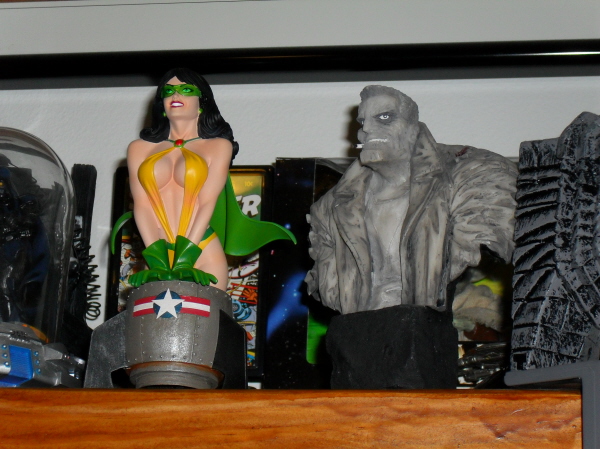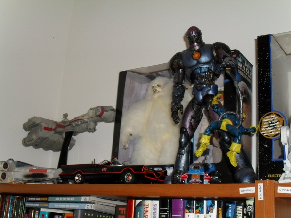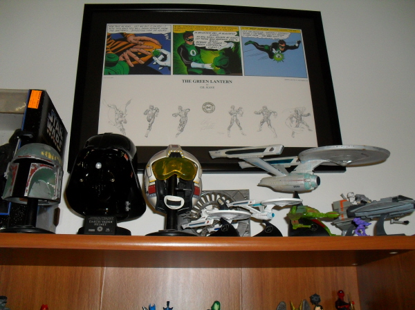 Some more stuff: Star Wars Helmets, Matchbox Star Trek, Art Asylum Refit Enterprise, and some Battlestar Galactica Viper and Raider. Also my Green Lantern piece that was purchased at the late Warner Bros. Store about 12 years ago.