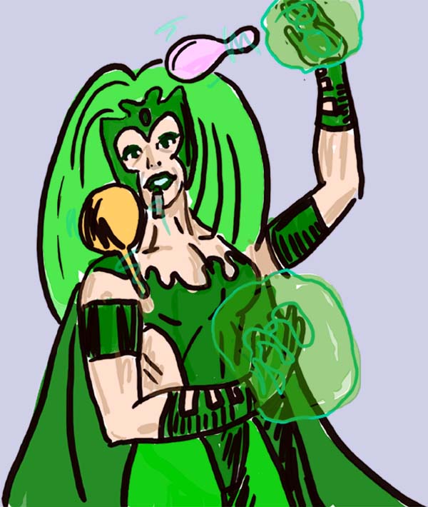 His life as Shaman was not without tragedy. The rivalry between his two young daughters, Sol and Angra, tore his family apart and would bring about a new terrible war between the Amazonians and the Scorp magic-wielding Shadow Warriors.