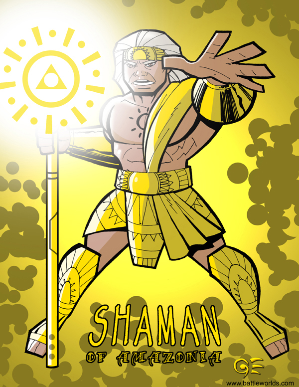 As elder statesman for the Amazonian City-State on Planet Terra, Shaman rules with a balance of a warrior's hand and compassionate heart. At the diminutive size of only 5 feet in height, his opponents early in his tenure made the mistake of judging Shaman by his size, as the Amazonian proved to be a champion combatant. Over time, his bold tactics and steady leadership found favor with the people, as the Council appointed him as Shaman of Amazonia.