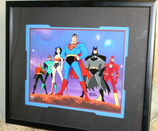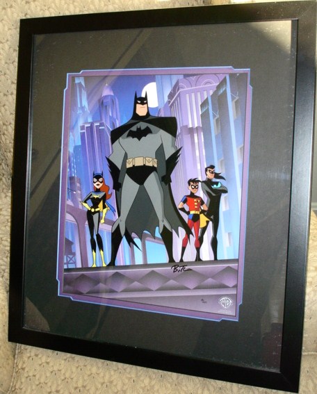 Here's a few of the prints I wanted to share with the forum that were bought at the Warner Bros Store. I lucked out when Kevin Conroy ( Voice of Batman in all of Bruce Timm's animated Batman and Justice League) was at the store and signed my Batman Family and Justice League prints.