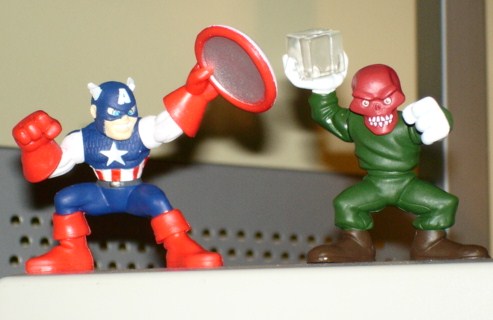 I picked up the Captain America/Red Skull Super Hero Squad yesterday, mostly for the personality shown by the Skull figure. Cap's sheild is finally removable for his hand also.