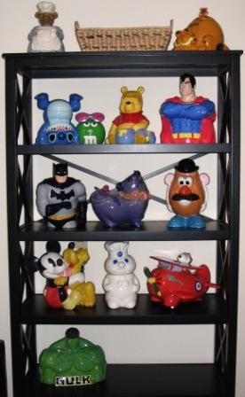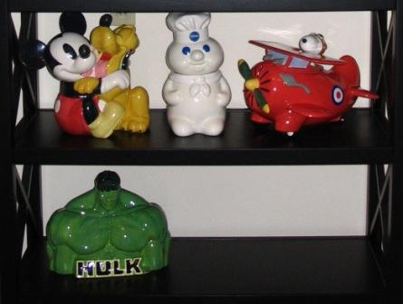 My wife and I have a cookie jar collection going...I may have posted a pic of it before, but here's an update: