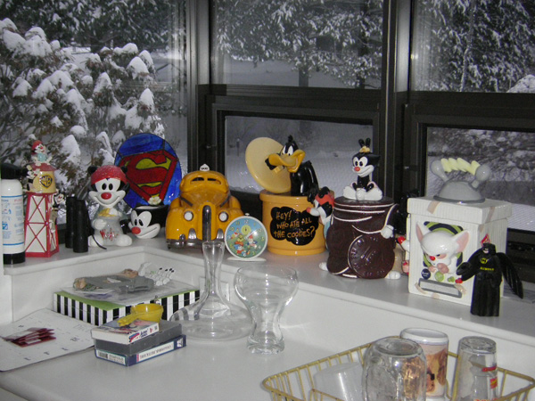 My wife is jealous of your kitchen ledge! She wants one for our cookie jars! I really like the Wonder Woman and Pepe Le Pew jars in your collection.