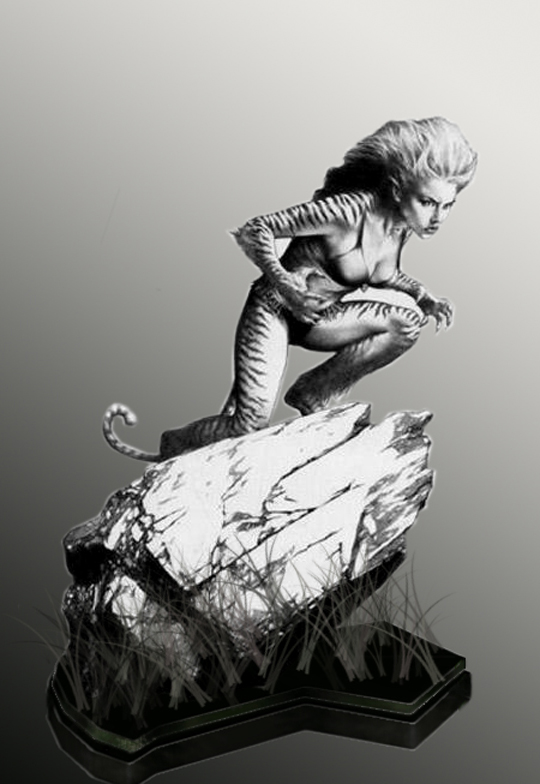 I am collector of Bowen statues and a longtime fan of your art. I have been wanting to see a Tigra FS in the Bowen line for quite some time.  I am looking for all the art I can find on the character to submit on the statue marvels forum. I have the all the Avengers West Coast books you did but I am looking for a picture or sketch to submit that is less catlike than she was In those particular issues. I seem to remember that Tigra was becoming more feline than human in that run of issues...basically do you have any pics or sketches of her perhaps in a museum type pose?  Below is a sketch submitted by a fellow forum member for her Full size statue in more of an action type pose. Basically it mimics the excellent Black Panther statue Randy released. What do you think? Now her hair of course would be different on the statue. When I asked Randy about the sketch he stated it would be too complex for an obscure character. Hence my mission to try to find a more museum type pose for the feline avenger. Can you help me out?...or at least lead me in the right direction to find great pics for this character.