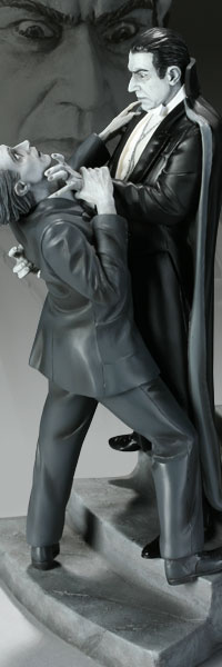 The Dracula statue is the closest to what I'm looking for (even if the face seems slightly off to me); I particularly like that it's in B&W.  If there are comparable statues of the Wolfman and Frankenstein's monster, I think I'll be hunting for them.