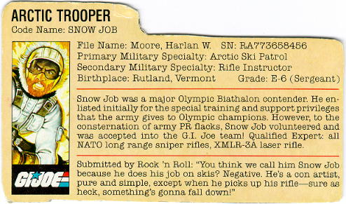 And yeah, I was one of the guys with most of the early stuff, too. Getting the first headquarters for Christmas was one of the best moments of my early life. And you're thinking of Snow Job and the Battle Bear.