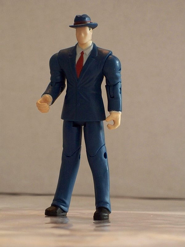 I got this little 3-inch guy today. The color scheme of this photo from online is off, as it is the original Question coloring, the light blue suit, orange shirt and yellow tie. It's not great by any means, and it was 6 bucks from Walmart, but still nice to have the actual DITKO version (well, the hat is a little too pimp, as I wish he was wearing the stingy brim circa 1964...but ehh)