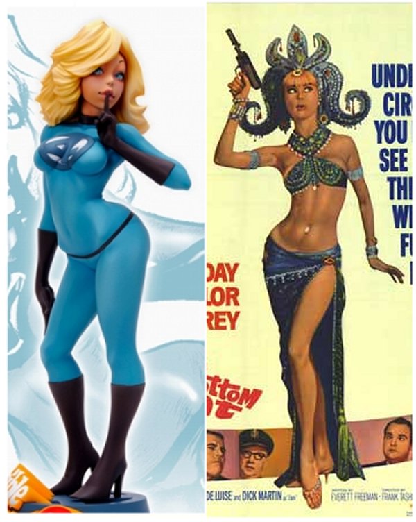 We'll certainly have to disagree if you think the compared expressions are miles away from one another or if the Doris Day painting is any less suggestive than the Sue Storm statue.