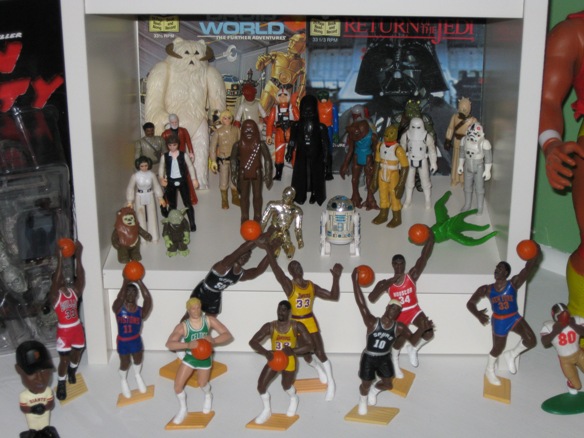 Starting Line Up basketball figures and some vintage STAR WARS toys.
