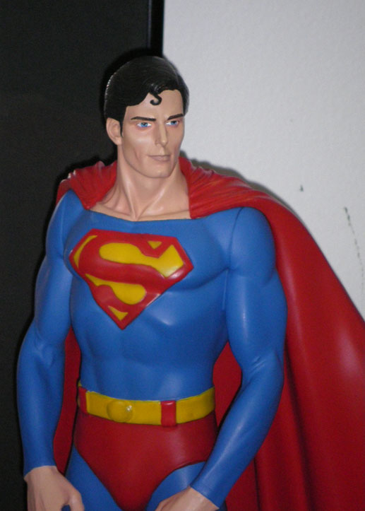 (Notice if you will, no S emblem on the belt buckle. Originally the costume designer placed one there, but after he visited the offices as part of getting ready for the role, Christopher Reeve insisted they remove it.)