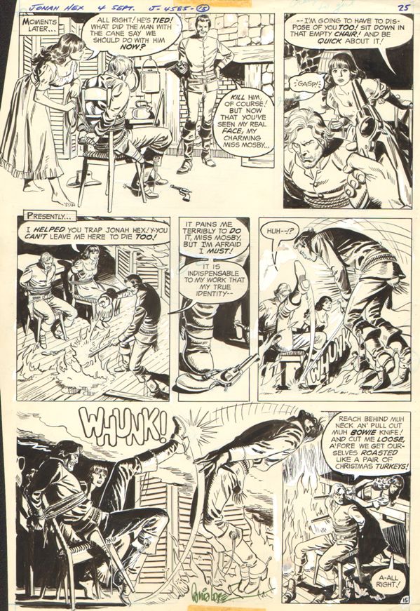 After a period with no new additions to my collection, I found myself hitting the jackpot with 3 new pieces, the first two coming from Heritage auctions and posted today.... Jose Luis Garcia-Lopez has always been DC for me and I was thrilled to acquire a page that I had expected to be permanantly out of my reach, since the art dealer who had possessed it was added to my "Shady, Do NOT Buy From" list..... This page is a beaut and Jonah Hex #4, page 15 brings the total number of pages I own from this issue to 5, with a handful of sequentials... fun stuff!