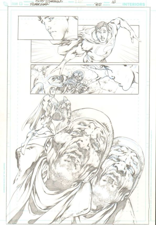 Next up is Eddy's double splash page from Nightwing #1 (pages 2 &3). Love the detail. I believe much of his details are lost in the inking process, but JP Mayer does an incredible job trying to keep up with him and is pretty damn good at capturing and maitaining the original essense. (For a larger scan, check out my CAF link: http://www.comicartfans.com/GalleryPiece.asp?Piece=945947&GS ub=68072 )