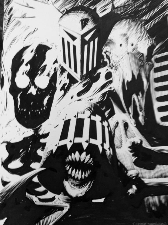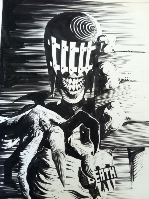 Judge Death by Frazier Irving. Bizarrely on the back of this one is a pencil sketch of Death reading a paper on the toilet!