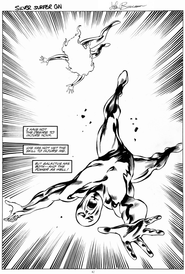 Here are a couple of pieces I picked up recently:I finally have a page featuring the Silver Surfer (full figure) by Big John. I have one other page from the book but it is just the back of the Surfer's head. I loved the GN with John drawing all splash pages, I understand it was alot more challenging then John first thought. But made all the better with Stan "the man" Lee writing all the dialog.