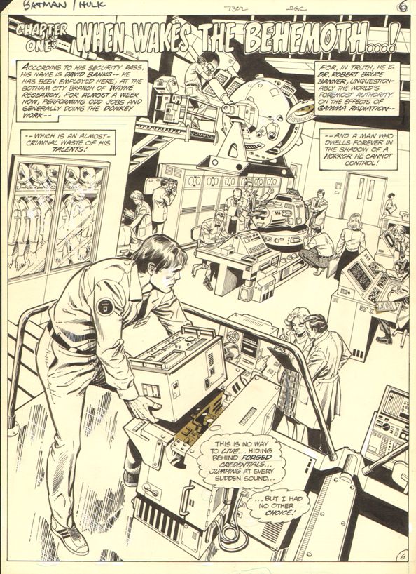 I could spend hours looking at this piece. Everything from the figures to postures and placement tell a story. Every inch of this page adds to its importance in the overall tale to come. Even more incredible in hand and up close from tiny details to the old school shading technique under Bruce Banner's piece of machinery. Dick Giordano provides some amazing inks and Len Wein's narration is spot on in beautiful synergy.
