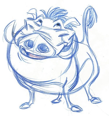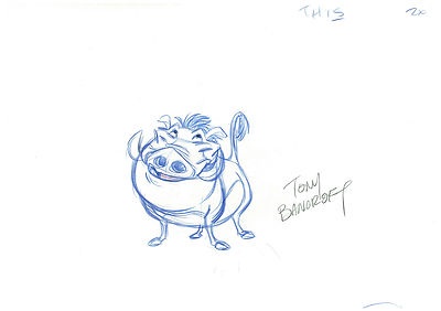 I picked up another actual production cel drawing done by an old friend, this time it's everyone's favorite warthog from the Lion King...